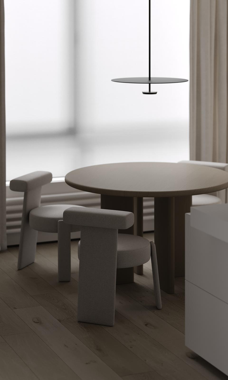 Architectural Forms: The use of clean lines and rounded silhouettes to soften the minimalist aesthetic.
