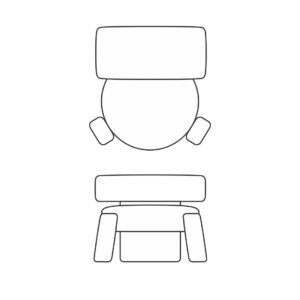 With its distinctive oversized proportions and geometric construction, the chair showcases massive, rounded armrests and a backrest that create a protective and enveloping silhouette. The sculptural base, characterized by thick, blocky legs, reflects the design language of the collection, ensuring visual continuity while providing exceptional stability.