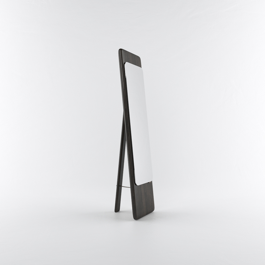 The Lukas mirror is a stylish floor-standing piece that showcases the collection’s unique design aesthetic while serving a practical purpose. This contemporary full-length mirror features a striking sculptural frame, turning a necessary item into an architectural statement.